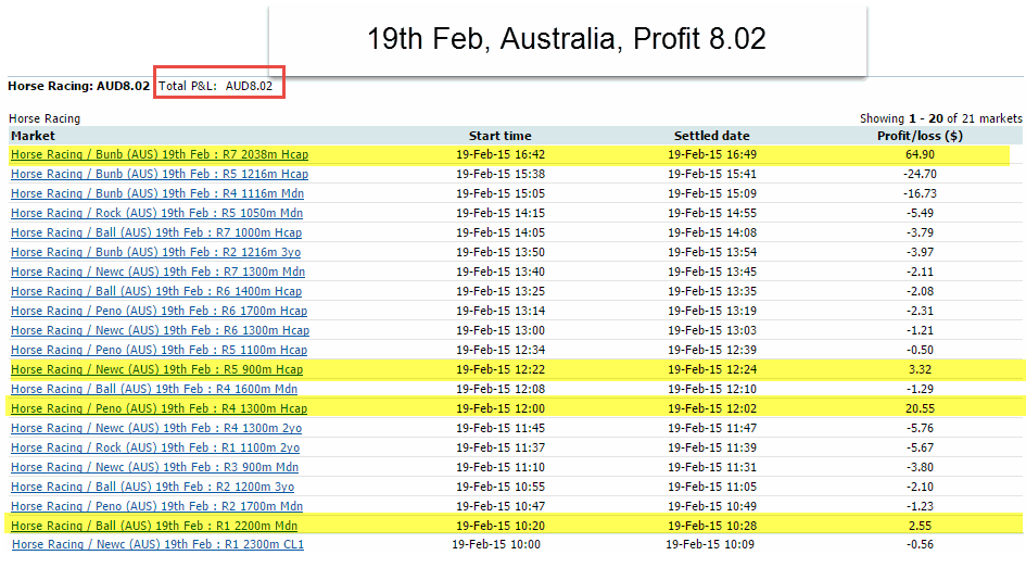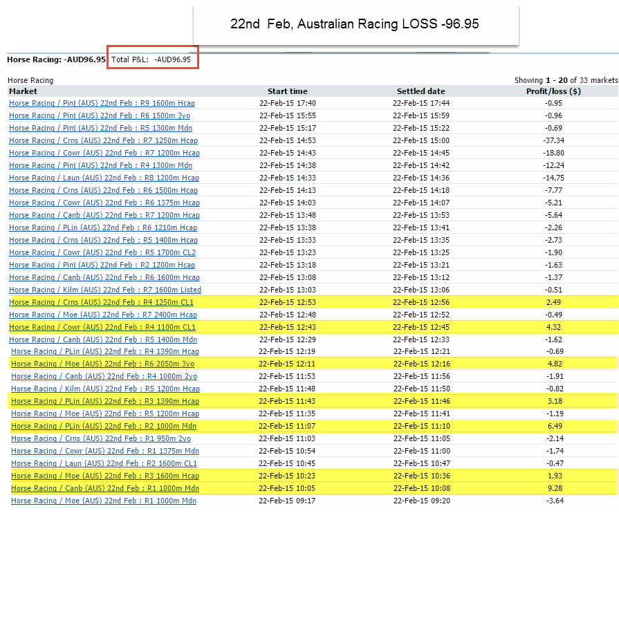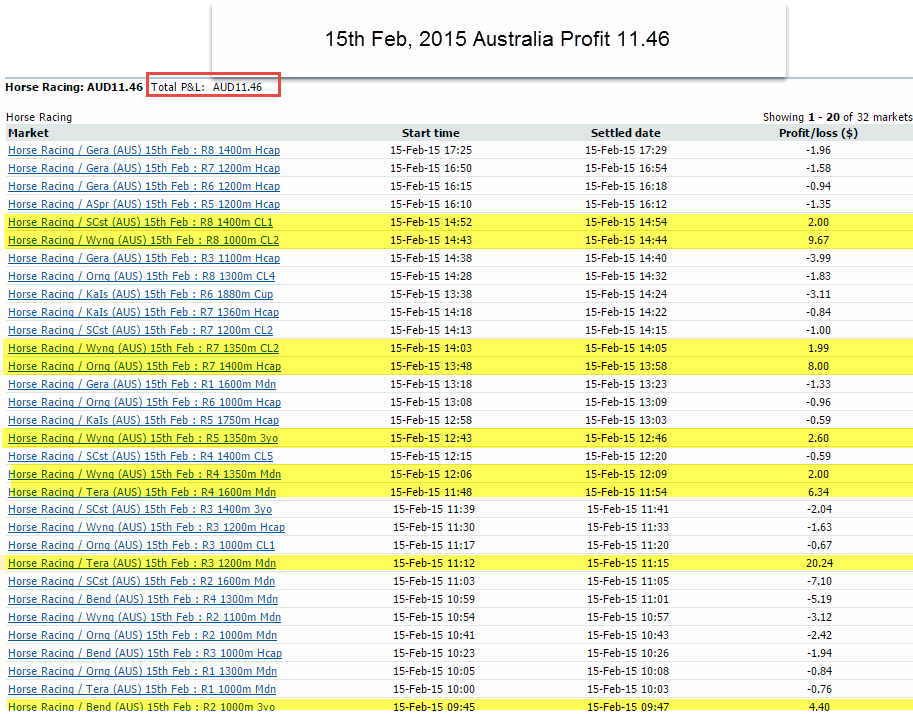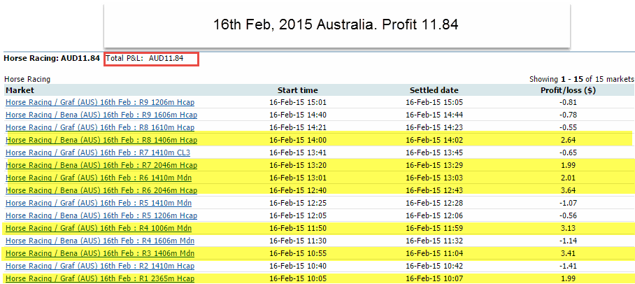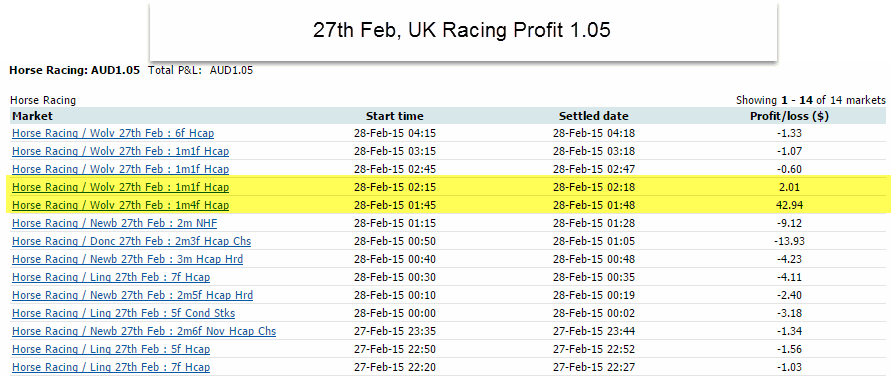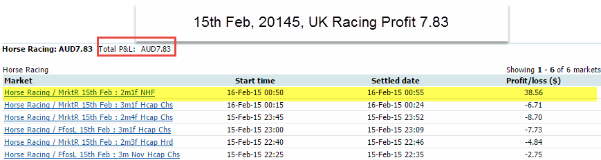 5th Feb, 2015 chasing small $2.00 Profit per Winner