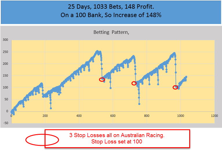 This method, looks at getting a winner and then stopping all betting, you would need to look at what stop loss you would like. The biggest risk was of 59.00 on the 27th Feb in UK Racings. |